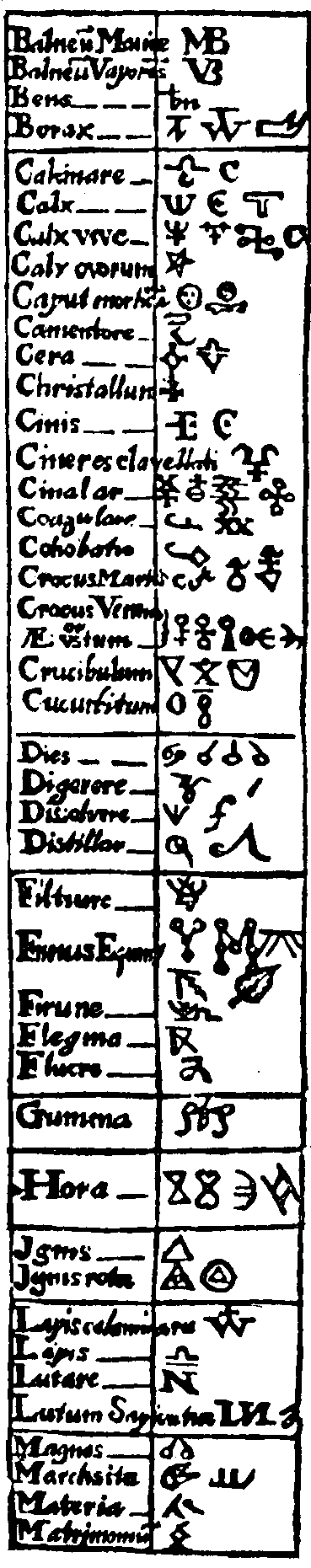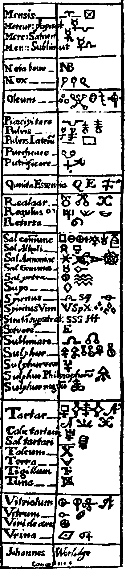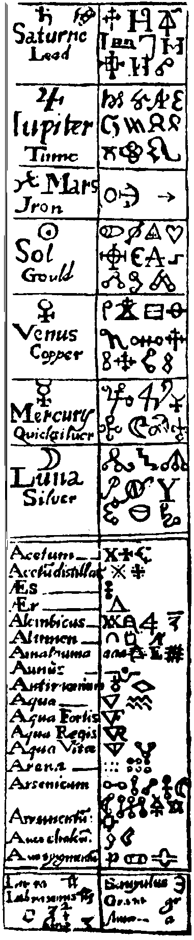 Alchemy symbols used in the 17th Century
