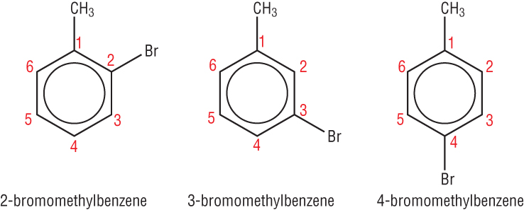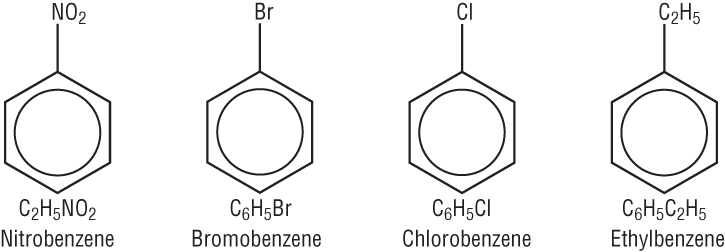 Common groups are - Cl chloro, - Br Bromo, - NO2 Nitro, and alkyl groups, - CH3 Methyl: