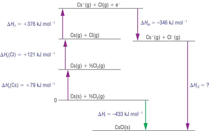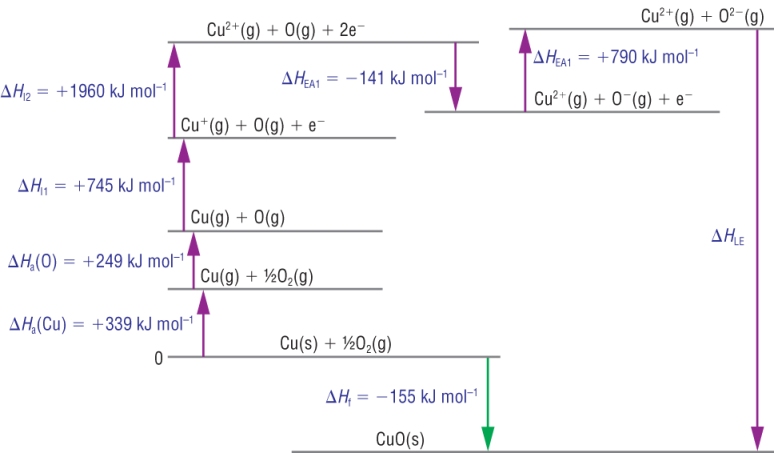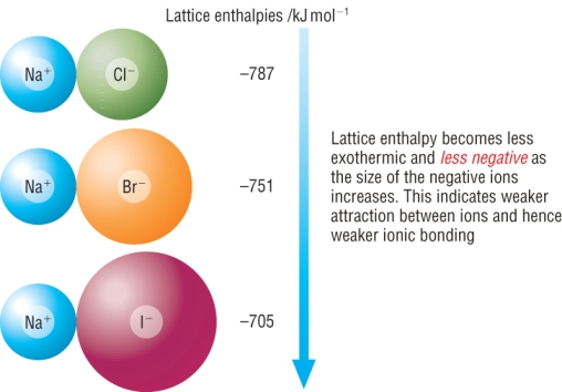 | Na+(g) | + | Cl-(g) | g | NaCl(s) | DHqLE | = | -781 KjMol-1 |