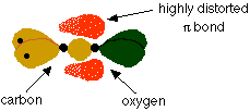 Oxygen is much more electronegative than carbon meaning that the p electrons will be highly distorted towards the oxygen atom as shown above.