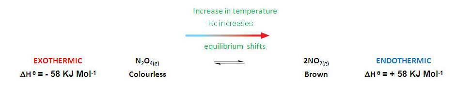 | Endothermic | Kc increases with an increase in temperature (increases products) | |