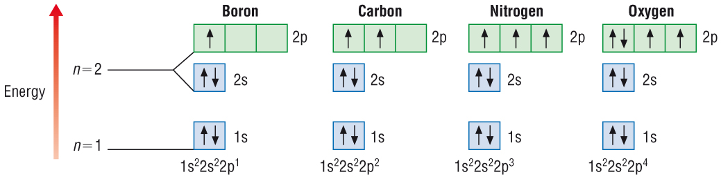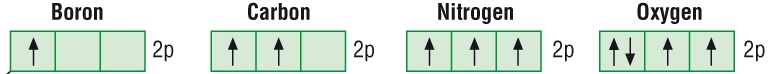 | O | 1s22s22px22py12pz1 | 1s22s22p4 |