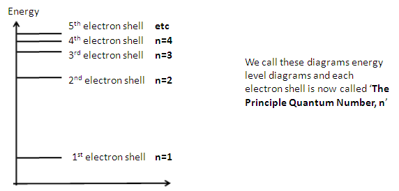 That the electron shells can be converted into an energy level diagram showing the Principle Quantum Number, n