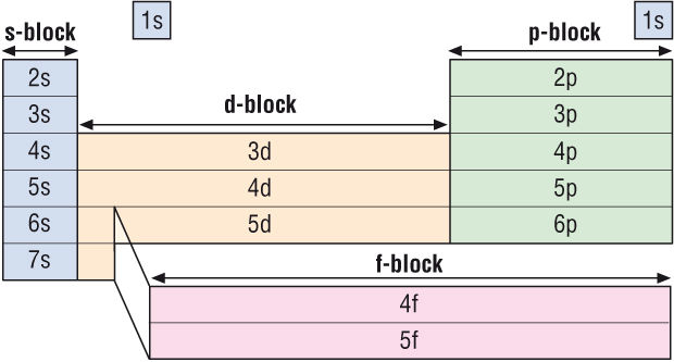 The Periodic Table is arranged in blocks of 2, 6, 10 and 14