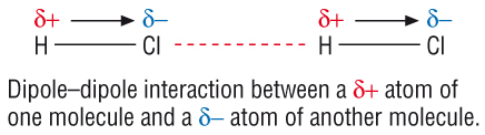 The d+ end of one molecule will be attracted to the d- end of a neighboring molecule.