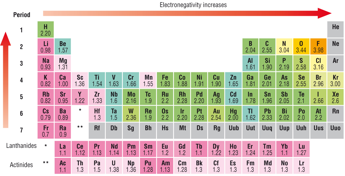 Basically as you go towards the top right hand side of the Periodic table, the elements become more electronegative: