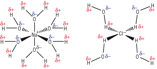 The force of attraction comes between the d+ / d- end of the polar water molecule and the opposite charges on the ion.