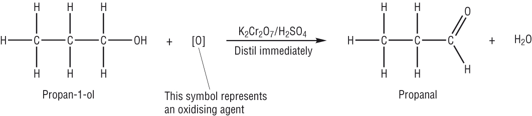 On stronger heating with excess (see the equation) acidified potassium dichromate the alcohol will be completely oxidised passing through the aldehyde stage to form a carboxylic acid: