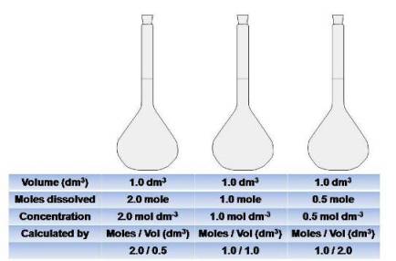 Concentration (Mol dm3) = No Moles