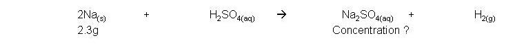 · Example: 2.3g sodium reacts with 250cm3 sulphuric acid to form sodium sulphate and hydrogen gas. Calculate the concentration of sodium sulphate solution made: