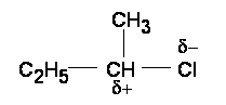 Cl is more electronegative than carbon so it has a d-. This means the carbon bonded to the chlorine in the halogenoalkane is Cd+.